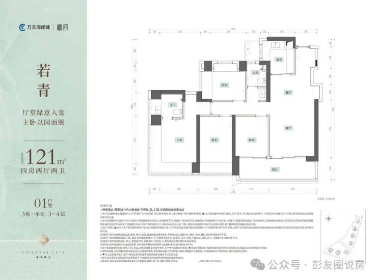 【3栋二单元】楼王单位,121-169㎡4-6房,层数46层,3梯4户,豪宅级梯户比,层高3.05米