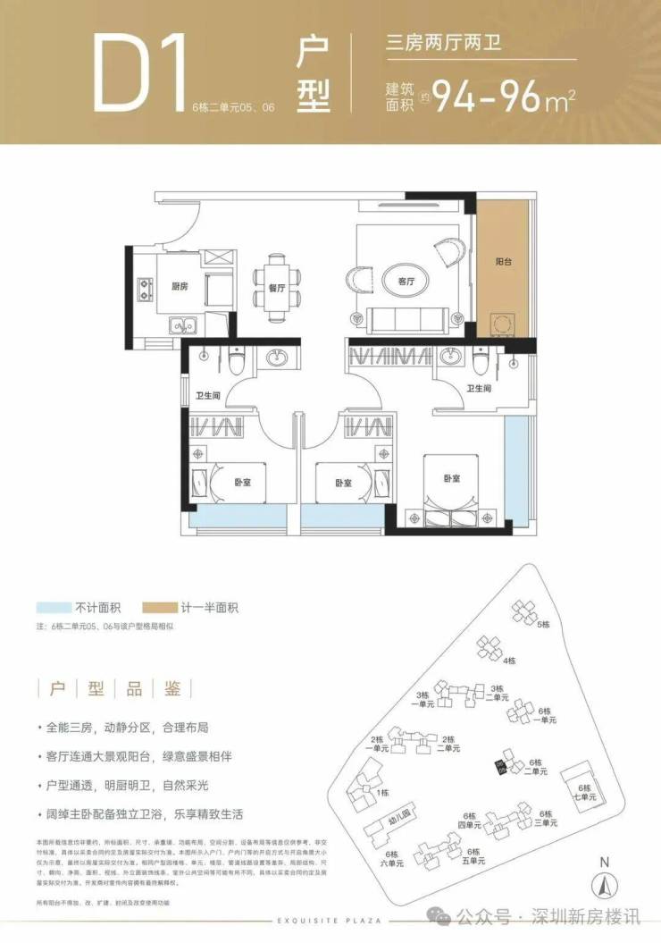 5、小区户型得房率整体偏低,加上赠送预计是在80%左右,对于目前坪山区域内的新房,这个得房率确实不占优势。