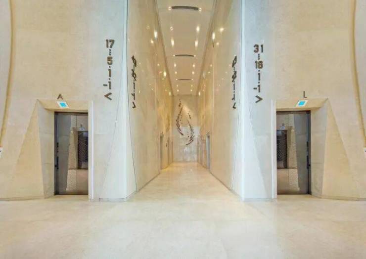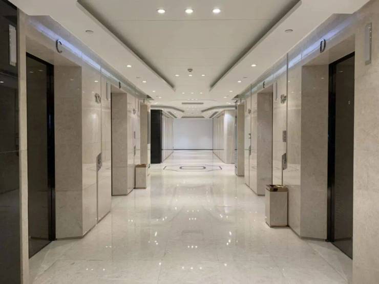 :进口三菱,客梯20部+VIP总裁梯2部+货梯4部,高中低区+双层轿厢,候梯≤25秒