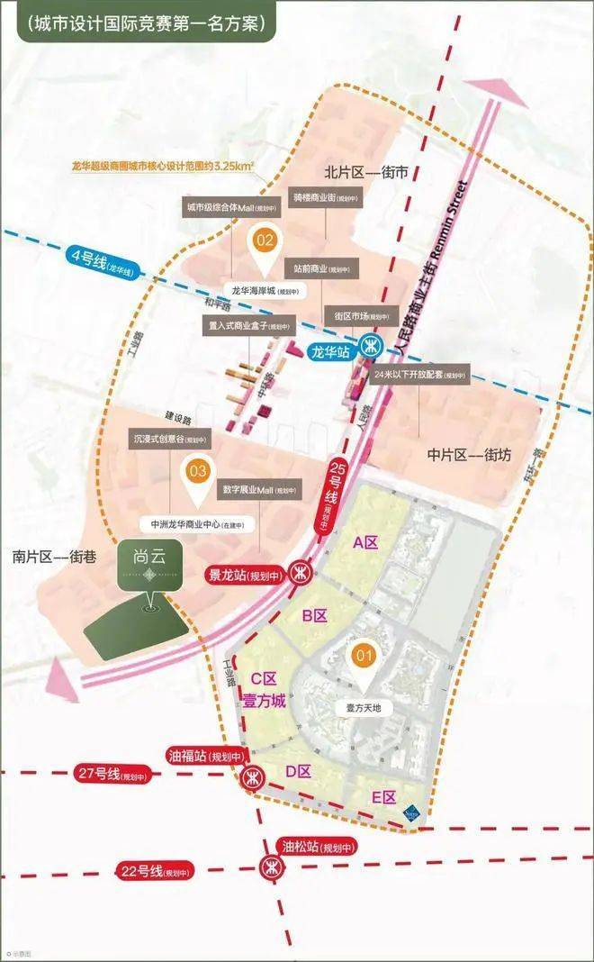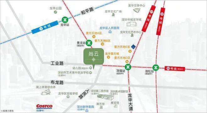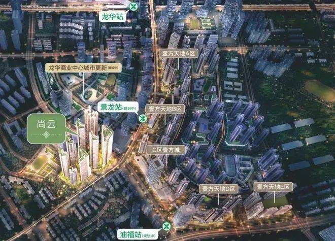 区域优势方面,鸿荣源尚云位于龙华中心区,紧邻地铁4号线龙华站,距离约1.2公里,步行约15分钟即可到达。此外,未来地铁5期规划的25号线景龙站距离项目约500米,将大大提升出行的便捷性。周边还有多条公交线路和主干道,交通网络四通八达。商业配套方面,项目自带约1.25万平方米的商业设施,紧邻鸿荣源壹方天地购物中心,内含1000米华南最长商业步行街和ABCDE五大主题商业区,超1000家品牌商家云集,满足居民的各种消费需求。未来,龙华超级商圈将成为规模超200万平方米的商业中心,进一步提升项目的商业配套优势。