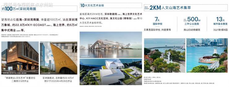 商业:自带1万㎡底商,步行10分钟到海上世界、K11,驾车15分钟到华侨城新玺(在建)。