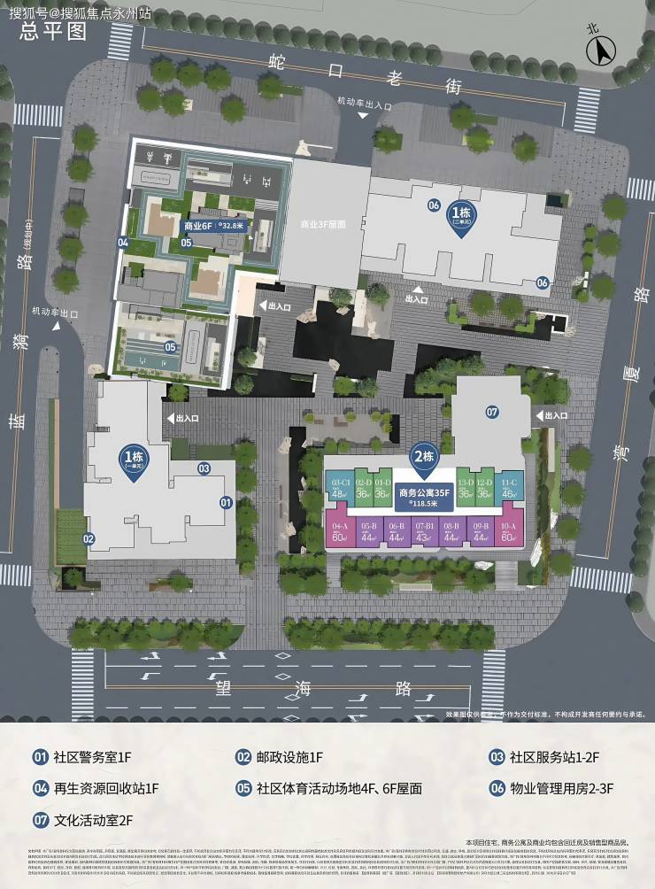 3栋超高层:2栋住宅(1-1栋45层、1-2栋44层)+1栋公寓(39层),限高150米,层高2.8-3米。