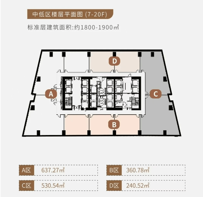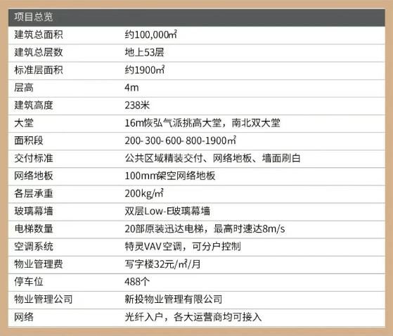 -内部布局:大堂空间宽敞明亮,装修豪华精致,采用高档的大理石和金属装饰,营造出庄重、大气的商务氛围。办公区域布局合理,楼层净高较高,空间开阔,可自由分割组合,满足不同企业的个性化需求。