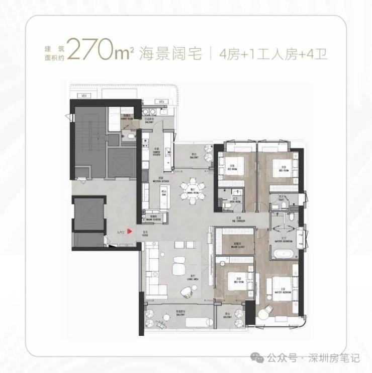 T9/T10栋:总高53层,4梯3户,183-270㎡4房及270㎡复式。