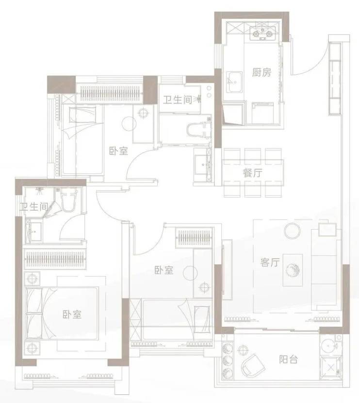 建面约79㎡ 3房2厅1卫