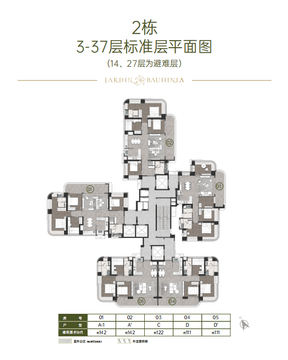 • 建面约142㎡南北方厅 阔景四房