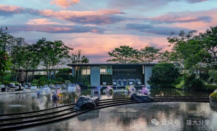 ——园区一廊二水三堂五区设计“一廊”,指“风雨连廊”。“二水”,指镜水花园和嬉水乐园两个带有水景的花园。三大堂,指主入口会所的归家大堂、楼栋的入户大堂和车库大堂。五区,是指植物私塾、体测天地、轻量运动场、水景会客厅、红叶睦邻五个活动空间。中国传统“连廊”与大堂、花园、五区共同构建了一个完整的闭合空间,让业主能够完美避免阳光的暴晒和大雨的淋湿。