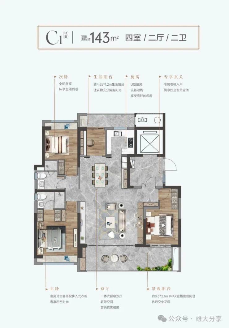 (四)《魔鬼精装细节-国际装标 臻品交付》约5000㎡国际装标,高品质交付,享高端人居生活体验。建收纳、守护、舒适、美学四大精装系统,融入近100个魔鬼化的精装细节,为生活营造一个充满关怀的舒适空间。