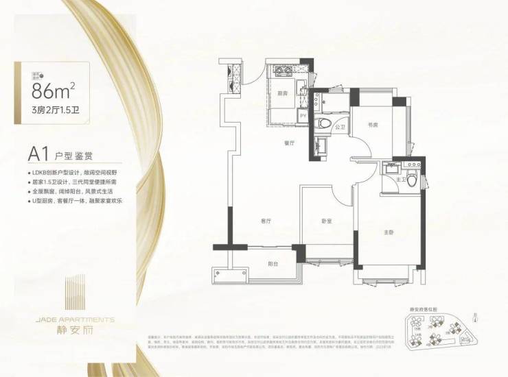 静安府于龙岗街道玉岭路与楼岭路(规划路)交界处。总建筑面积13.8万㎡,规划建设5栋住宅,总户数1050户其中商品房920户,保障房130户。套内面积≤90㎡共990户,占比约94%。小区配建一所1600㎡幼儿园。