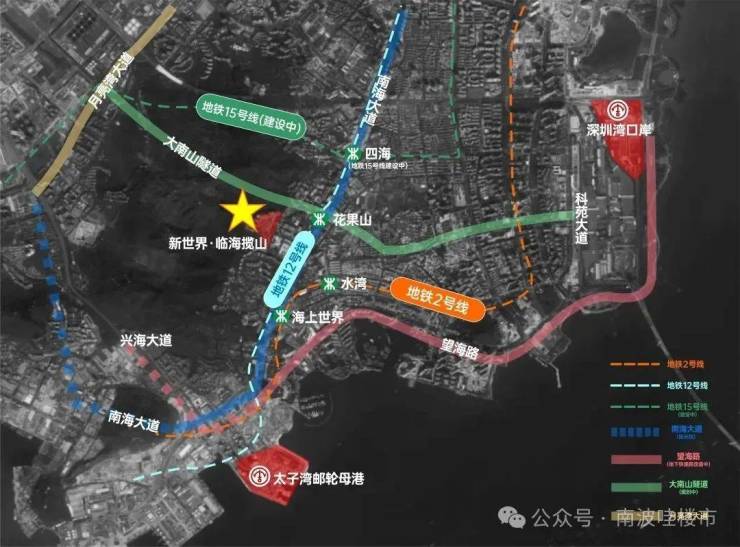 项目地处“湾区、自贸区、先行示范区、特区”四区叠加板块 —— 世界蛇口,承前海启后海,粤港澳大湾区核心引擎。新世界·临海揽山公寓,踞首半山豪宅聚集区,资产价值愈显珍罕。