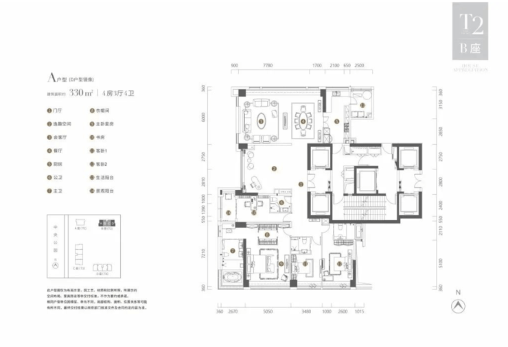 户型面积313-330平3-4房。项目位于福田中心区,北侧为深南大道,东侧为彩田路,项目由7栋超高层建筑组成,本次推售房源位于T2栋。周边学校有文天祥小学、岗厦小学、莲花中学,周边配套丰富:市民广场、深圳中心公园、会展中心。