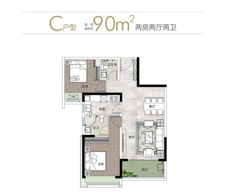 90㎡ 2房1卫