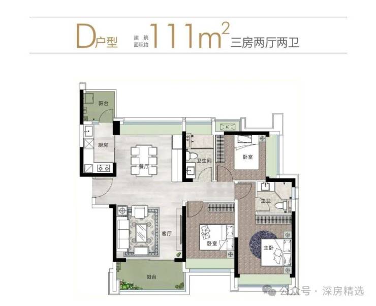 111㎡ 3房2卫