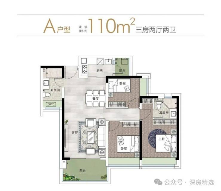 110㎡ 3房2卫