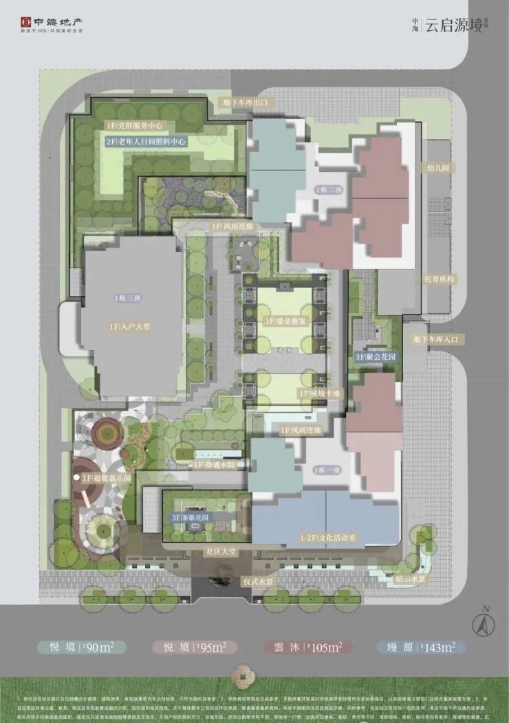 面积与户型:推售房源涵盖建面约90-95-105-143㎡的3-4房,共298套可售房源。其中,95/105㎡三房户型以朝东为主;90㎡三房户型朝西;143㎡四房大户型东南朝向。