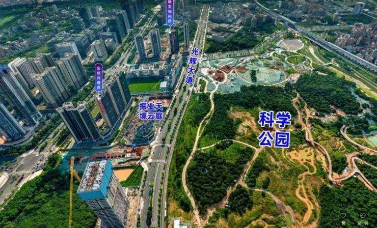 关于光明这个大公园,我认为是深圳未来做为粤港澳湾区引擎的核心建筑标志,多年后回头望,说一定还是一个时代的精神印记,下面介绍下,『振业天境云庭』一路之隔的科学公园。