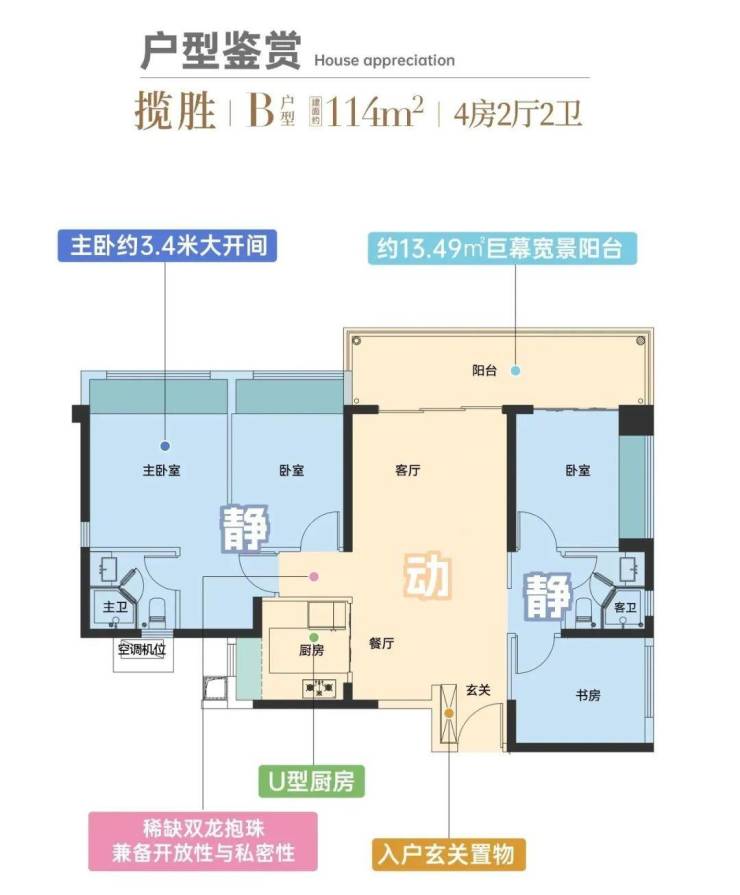 约13.5平景观阳台,约3.4米大开间主卧套房...心动价值一一被点亮。