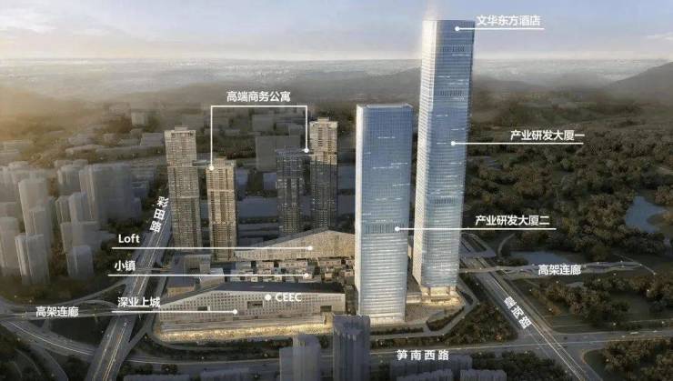 深业上城整体涵括了高端商务公寓、甲级写字楼、总部办公、大型集中商业、开放式街区商业(商业小镇)、MUJI轻奢酒店、文化东华奢华酒店等众多物业元素于一体的城市综合体,总建面约120万㎡。项目位于福田中心区北面,彩田路、皇岗路和笋岗西路的围合区域,临近地铁10号线冬瓜岭站。同时,深业上城坐落于莲花山和笔架山两大市级公园之间。