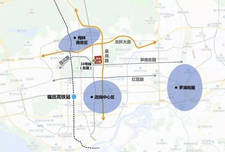 深业上城位于福田中心区的东北角,纵览深圳南北中轴之上的政商地标,南面毗邻政商中心区,北面连接梅林商务区、深圳北商务区,东至罗湖商圈,西至南山高新技术产业基地及前海自贸区。
