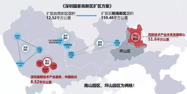坪山高新园区,获国家级战略加持,规模达 51.6 平方公里,是南山科技园的 6 倍,作为深圳国家高新区 “两核” 之一写入十四五规划蓝图,与南山高新园区并列。这里正以近 6000 亿投资全力打造全球创新中心,预计到 2030 年将吸引 3000 家高新企业进驻,集聚大量人才,总产值颇为可观。同时,坪山还是深圳东部最大规模总部基地,对标深圳湾超级总部,坪山图书馆等人文公建汇聚,是宜居宜业新高地,未来发展前景极为广阔。