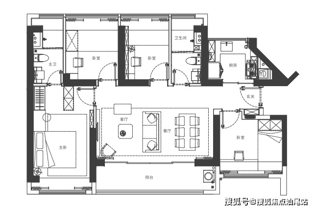 家政阳台定位,6人位餐厅满足多人就餐,主卧独立卫生间
