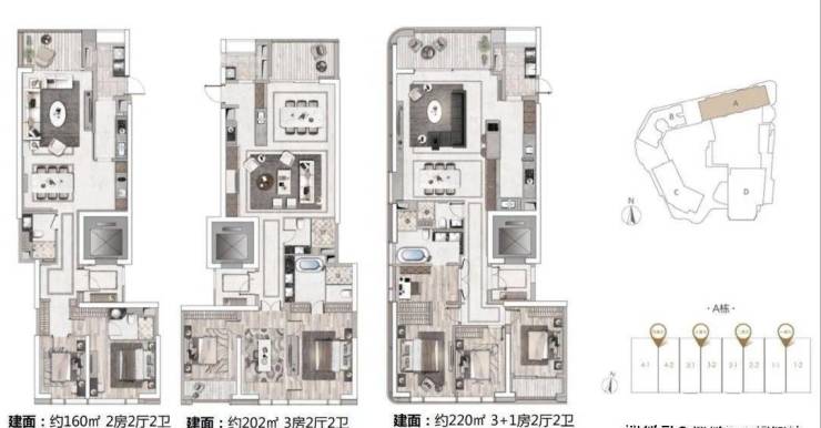 A栋产品:160-200-220㎡ 2-3+1房云端美寓