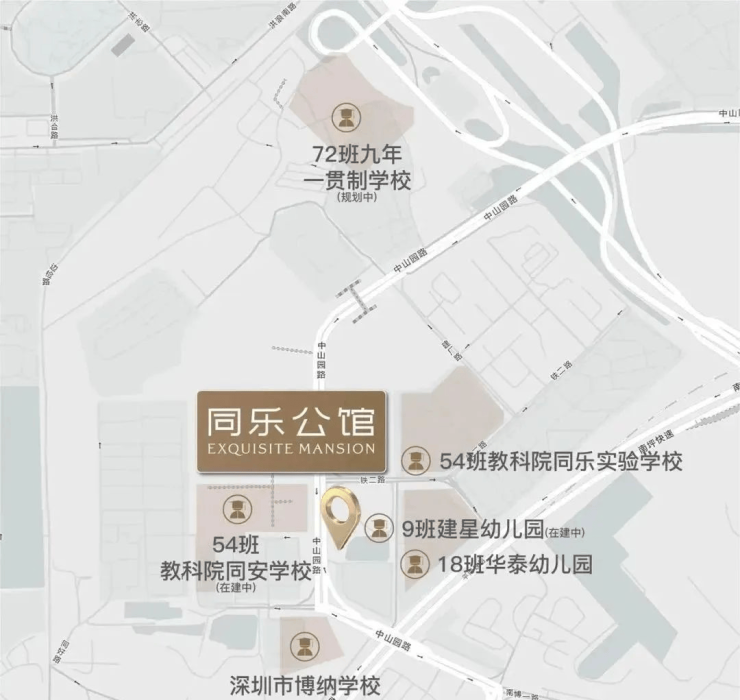 项目的小学和中学学区均被划归至南山区教育科学研究院同乐实验学校麾下。这所享有盛誉的学校创建于2004年,作为一所公办九年一贯制学校,目前拥有48个教学班,为学生提供优质的教育资源和教学环境。