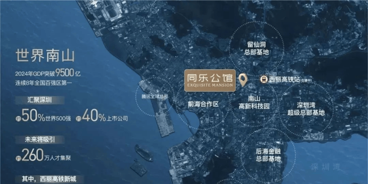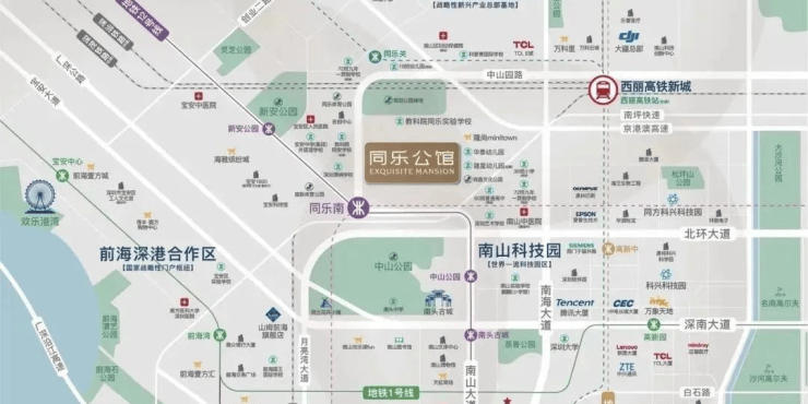 同乐公馆,位于深圳市南山区南头街道同乐片区中山园路东侧,地处南山与宝安交界处,紧邻地铁12号线(在建)同乐南站,步行距离约500米,项目坐拥南山核心区位,毗邻科技园、前海自贸区及留仙洞总部基地,5站可达高新园,辐射粤港澳大湾区核心产业带,具备承接高端人才居住需求的潜力。