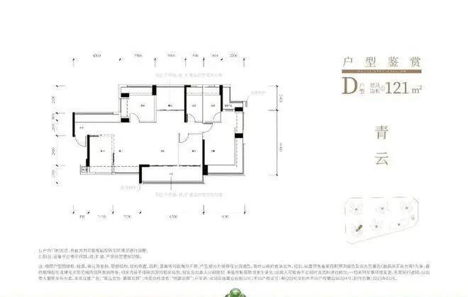 121㎡的4房2厅2卫,设计的是横厅南北通透格局,进门赠送约4.2㎡的前室入户,独门独户,客餐厅6.35米开间,4个卧室分别做到了主卧21.37㎡/次卧10.22㎡/次卧10.19㎡/次卧7.39㎡(实测面积,去掉墙体),主卧+1个次卧270°飘窗,客厅连接次卧出6.3米长大阳台,L型厨房,得房率约79.45%(不含赠送),阳台主朝西南或东南向。