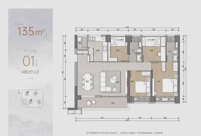 户型布局上看,每栋住宅楼的标准层均为3梯5户,通过风车型布局,每层每户之间可做到基本无遮挡,无对视。套内设计上看,安宏基天曜府户型整体方正实用,空间配置科学合理,动线简洁,在功能和舒适性中取得平衡,具有良好的空间感。配置大阳台、大飘窗设计,通风采光性能优秀,光照充足。