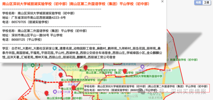自带一所九班公立幼儿园,南二外平山中小学,深圳大学城丽湖实验学校初中部