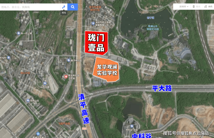 位于龙华区君子布街道环观南路与何地路交汇处,地处龙华观澜与龙岗平湖的交界处。从区域位置看,处于观澜相对偏的区域。虽然东侧紧邻观澜山水田园这一旅游休闲好去处,但周边的城市界面存在不足,北侧大片城中村影响整体档次。