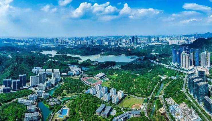 西丽湖国际科教城:覆盖69.8平方公里,荟萃清华、北大等18所塔尖高校,2家省级实验室,共计拥有两院院士78人,全职院士28人,223位“千人专家”,1.4万科教人员,4.54万在校生,产学研深度融合,成就城市智慧高地;