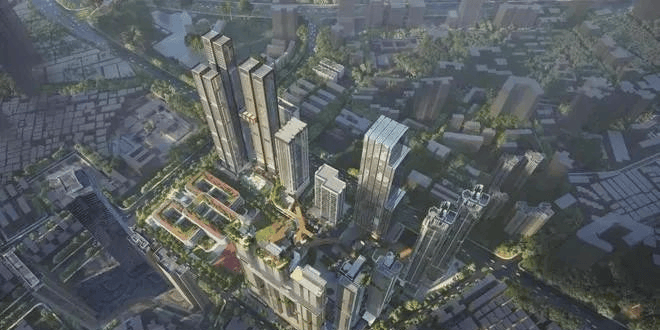 金地环湾城项目位于深圳福田区核心区位,左手牵着香蜜湖新金融中心,右手牵着河套深港科技创新合作区,总用地面积约6.24万㎡,总建面约105万㎡,汇聚塔尖住宅、高端公寓、菁英学校、高奢酒店、商务地标、绿地公园、漫调商业、文化艺术等多种业态。