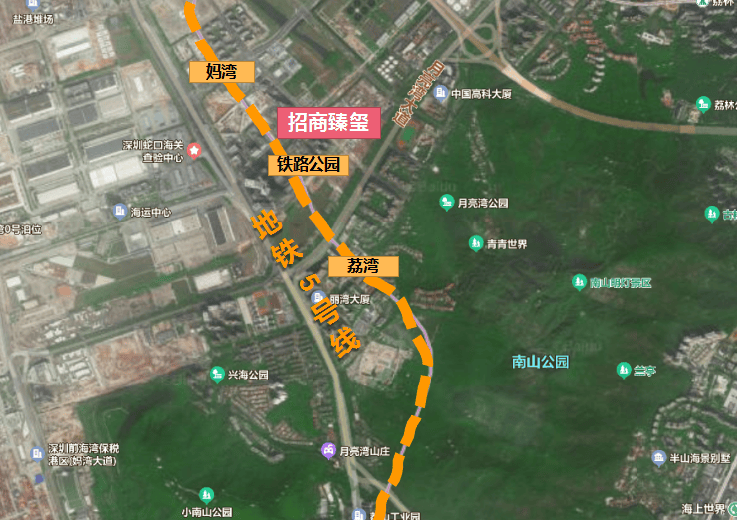 项目最近的地铁是5号线妈湾站,其次是5号线铁路公园站。铁路公园站还规划了5号线与9号线换乘,未来将于宝安新老中心、南山重点区、蛇口、西丽、前海片区串联起来,此外,将还有15、21、27、穗莞深城际等多条轨道交通串联前海与其他重点片区。
