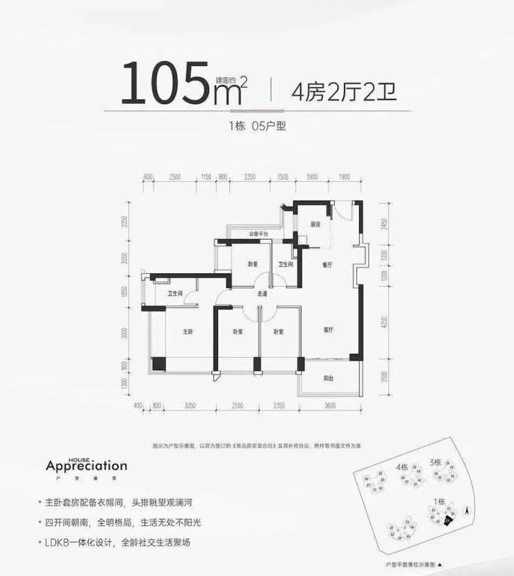 项目主推建面约72-105㎡的3-4房,产品基本在98%使用率,最高实用率甚至能突破100%,相较于新规前普遍75%左右的得房率,堪称是“王炸”级别的存在!