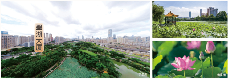 【碧桂园翠湖大厦】楼下就2大公园,约200米洪湖公园,欣赏约60万㎡荷塘月色;约700米翠竹公园,感受约45万㎡竹类大观园。