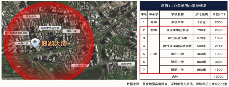 【碧桂园翠湖大厦】处于深圳教育配套最密集的区域之一,7所罗湖老牌中小学环绕,距深圳中学初中部直线距离约300米。