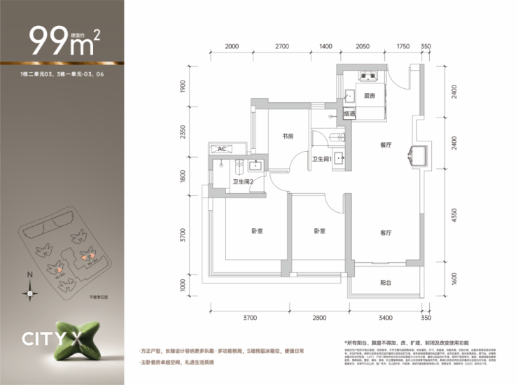 而项目约99平方米的户型,更是一个受市场欢迎的“全南向爆款大三房”户型,整体方正,格局规整,利用率极高,各个功能区域划分清晰,动静分离,动线合理,无论是日常起居还是家庭聚会,都能确保流畅舒适的空间体验。