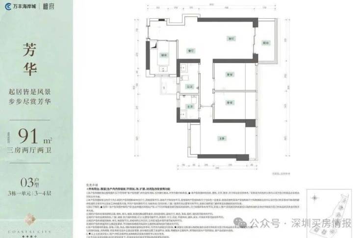 宝安区万丰海岸城三期全新产品【檀府】已开放展厅和样板,推售89-91㎡三房二卫,93-103-121-125平米的四房二卫,139㎡的五房二卫,169㎡的六房。