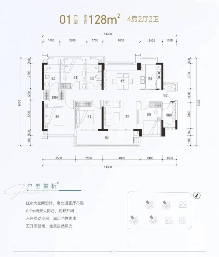 其中,推出建面约84㎡三房两厅两卫,约98㎡三房两厅两卫,约114㎡四房两厅两卫,约128㎡四房两厅两卫,共计4个面积段产品。