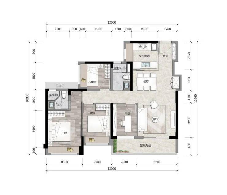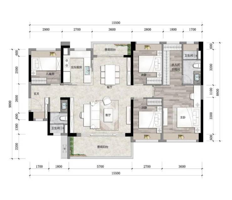 值得注意的是,大客厅和阳台拥有5.7米的开间,如果实在家庭人口多,客厅是可以再单独隔出一个小房间的,只是会牺牲大客厅的尺度,各取所需吧,至少提供了更多的一种可能,挺好。