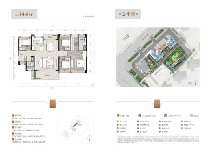 瑞樾府户型为全4房设置,109平小四房和144平大四房,其中144平可改5房,为4+1。也就是这个盘没有三房以下小户型,纯四房,