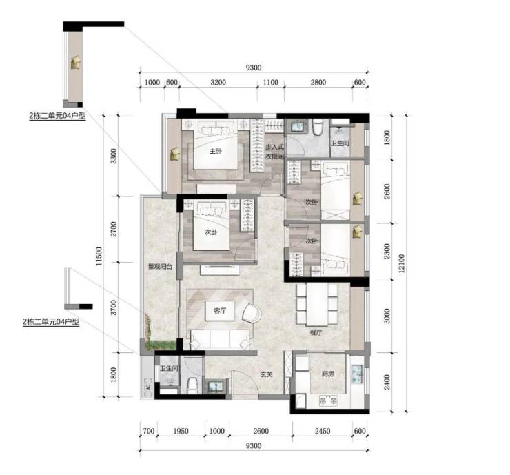 第三是项目的户型,可销售的306套房源全部为改善型的四房产品。