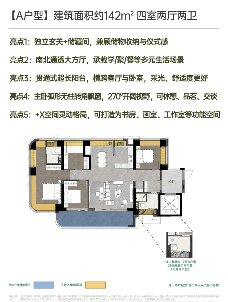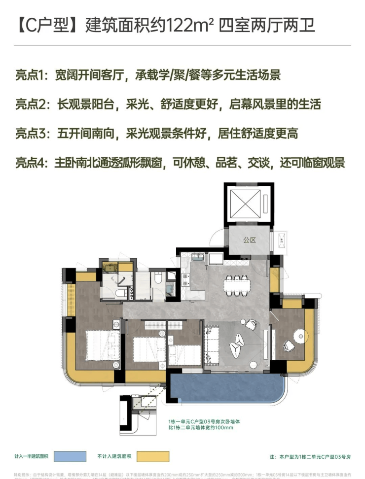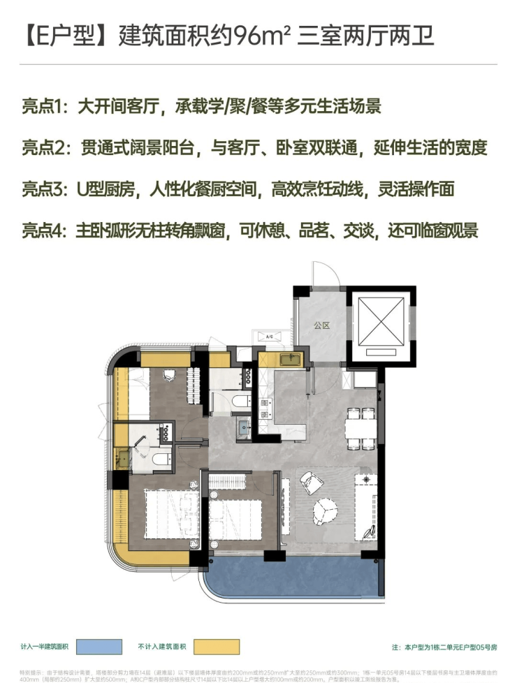 270°弧形无柱大尺度飘窗、大宽厅、大阳台,带来更多使用空间。