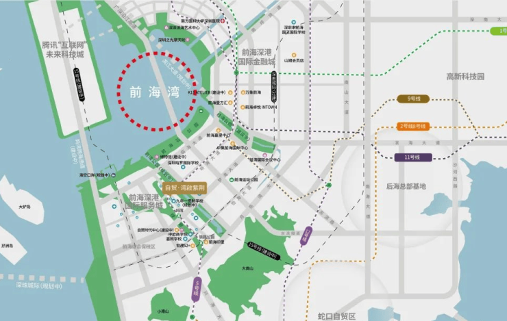 位于前海三湾之一妈湾,背衔大、小南山,享山河海景观、纯粹居住社区,给予目标人群在前海置业的更好生活形态。