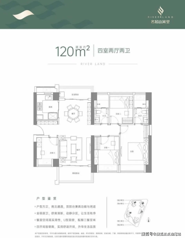 🔹120㎡四房两卫(南北通双阳台)