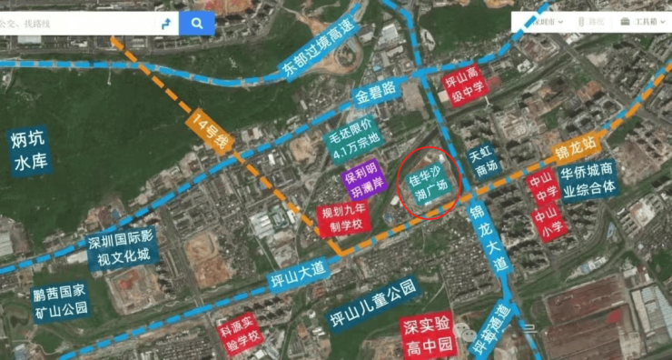 地铁:紧邻地铁14号快线坪山门户站——锦龙站700米(已通车),12站福田岗厦北。地铁16号线(预计2022年内通车)、地铁33号线(在建)