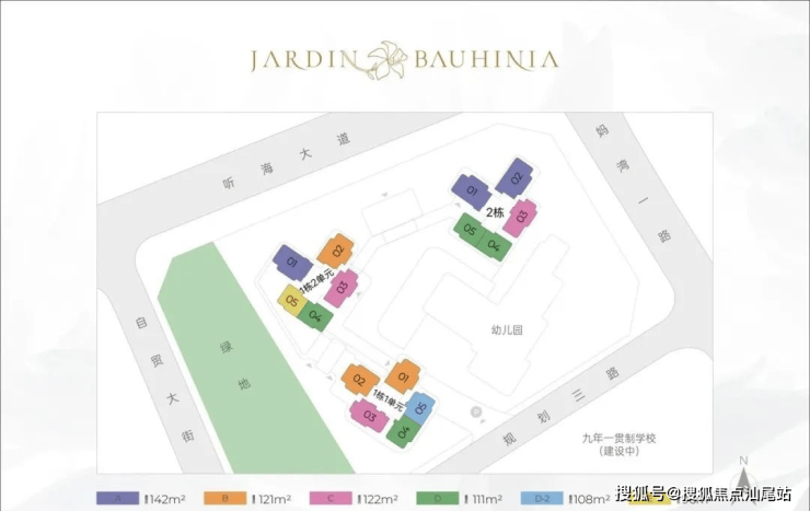 湾啟紫荆府,由招商集团打造,总占地面积约1.49万㎡,总建筑面积约10.6万㎡,计容建筑面积约6.68万㎡,容积率4.47,绿化率30.01%,共规划3栋总高36-37层住宅,其中1栋1单元/2单元住宅36F,2栋住宅37F,还配建有1所18班幼儿园。总规划485户,全部都是商品房住宅,4梯5户,地下室有2层,规划停车位597个, 车位占比1:1.23。