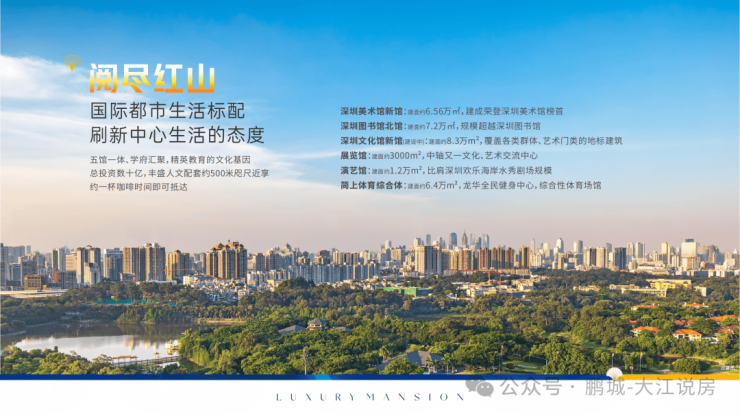 🌟演艺馆:建面约1.2万m²,比肩深圳欢乐海岸水秀剧场规模(已开馆) 🌟简上体育综合体:建面约6.4万m²,龙华全民健身中心,综合性体育场馆(已开馆) (信息来源:百度百科)